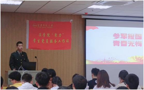 bevitor伟德国际19462021级研究生赵佩文是来自北部战区的一名工程兵。他结合自身经历为大家介绍了我国的五大战区和七大军种,详细介绍了同学们最为关心的入伍政策和报考军校等问题,解答了同学们对于参军入伍的诸多疑问。