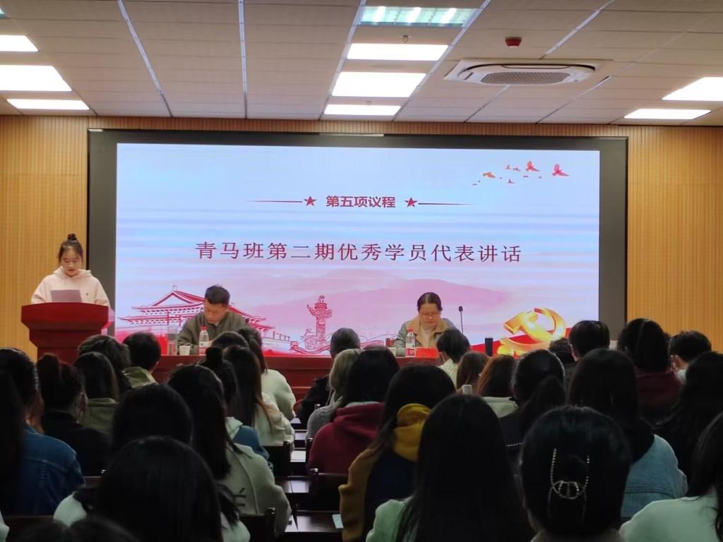 “‘青马工程’是我们锻炼品格意志,提高工作水平和思想觉悟的大课堂。”第二期“青马班”优秀学员代表、法学类专业2021(4)班的陈咏琪进行发言,她和大家分享了学习过程中的收获。她表示,为期一年的系统性培训让她进一步坚定了对马克思主义的信仰,强化了对党团知识的学习,也更加注重理论与实践相结合的学习方法。