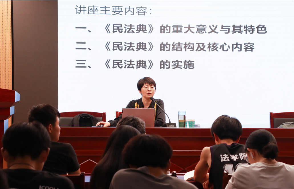 除了法学专业的学生,讲座更吸引了不少非法学专业的学生前来聆听学习,新闻传播学类专业2021(6)班的顾春晓就是其中一位。“民法典的颁布与我们的生活息息相关,有着划时代和里程碑式的意义。”她表示,讲座有助于她进一步了解民法典的相关内容,增强自身维权意识和法治思维。