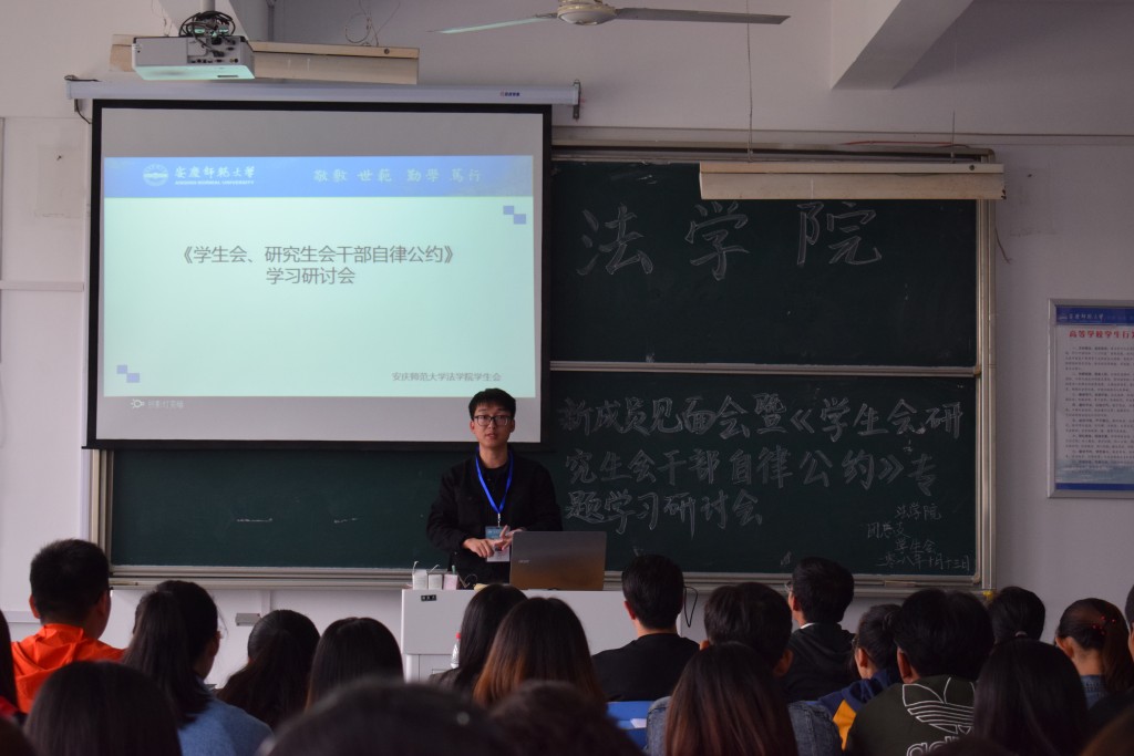 10月13日下午,bevitor伟德国际1946学生会新成员见面会暨《学生会、研究生会干部自律公约》(以下简称《公约》)专题学习会在文津楼405教室召开,学生会全体成员参加了会议。