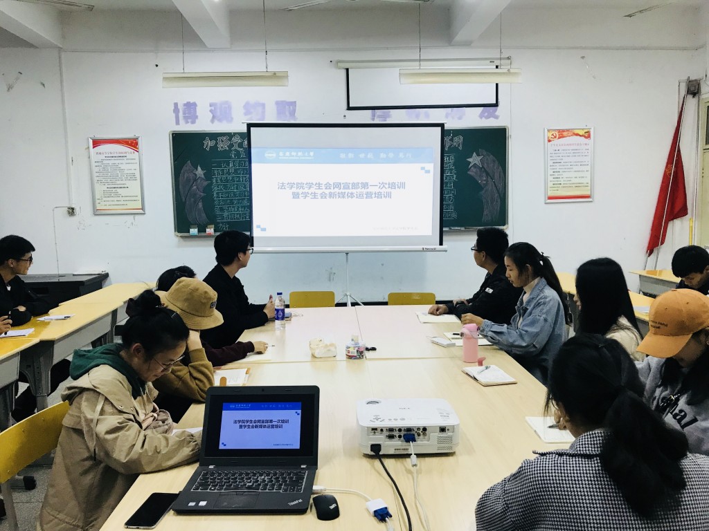培训会上,邵琪同学以新闻的基础知识为起点展开本次培训话题,详细讲解了新闻稿标题、导语、主题、结语和意义这五个组成部分的内容构造,及其必备的真实性、准确性、实效性、简明性。紧接着,她着重对“会议、活动、竞赛、表彰”四类常见的校园新闻写作技巧一一做了介绍。最后,她通过现场展示的方法向同学们逐一介绍了微信、微博等新媒体平台的各项功能和运营维护时的诀窍。