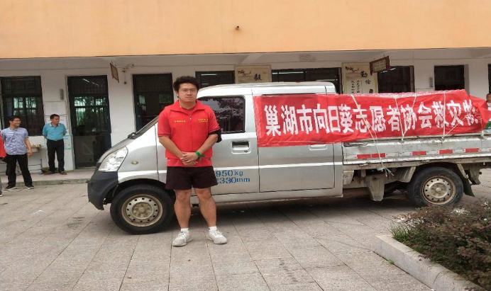 2018级社会工作专业丁点迪从7月18日就加入了家乡巢湖一个社区组织的志愿者协会——巢湖金码头社区向日葵志愿者协会开始抗洪救灾志愿服务。