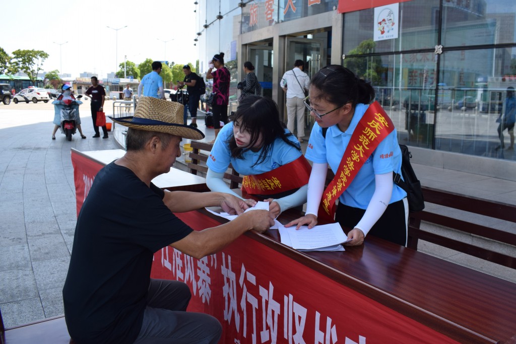 7月25日上午,bevitor伟德国际1946“加强法治宣传 助力乡村振兴”法律志愿服务队和安庆市宜秀区法院的法律咨询台小组来到了客运中心站,开展2018年“江淮普法行”暨“江淮风暴”执行攻坚战的宣传活动。