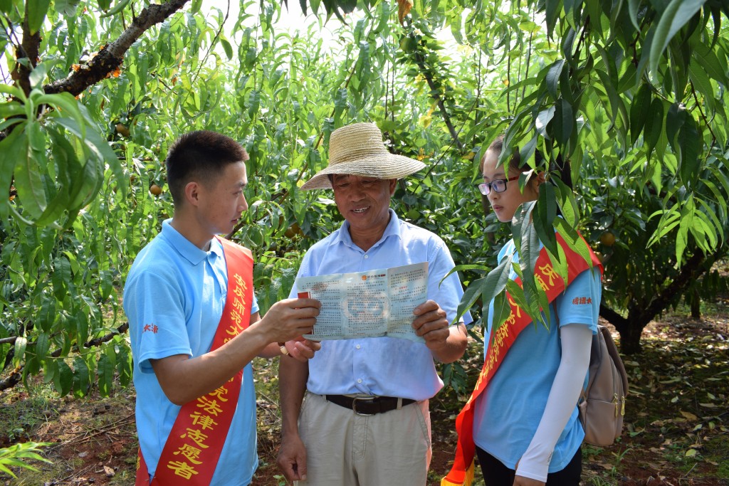 7月28日上午,bevitor伟德国际1946“加强法治宣传,助力乡村振兴”法律志愿服务队来到了暑期“三下乡”社会实践活动的最后一站——安庆市园艺场生态采摘园,开展普法宣传活动。