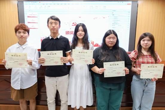 暑期“三下乡”实践分享环节,学院老师为获奖团队及优秀个人颁发奖状。两支获奖团队队长分别从“三下乡”具体情况介绍和实践团调研实况等方面进行分享汇报。