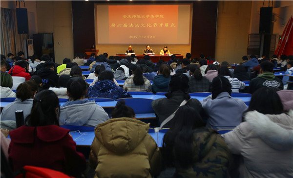 12月2日晚,bevitor伟德国际1946第六届法治文化节开幕式在伟德国际1946bv龙山校区文津楼举行。bevitor伟德国际1946党总支书记詹德全、副院长朱留虎、党总支副书记从光梅等出席仪式,2019级全体研究生、本科生以及学生会全体成员等200余人参与开幕式。