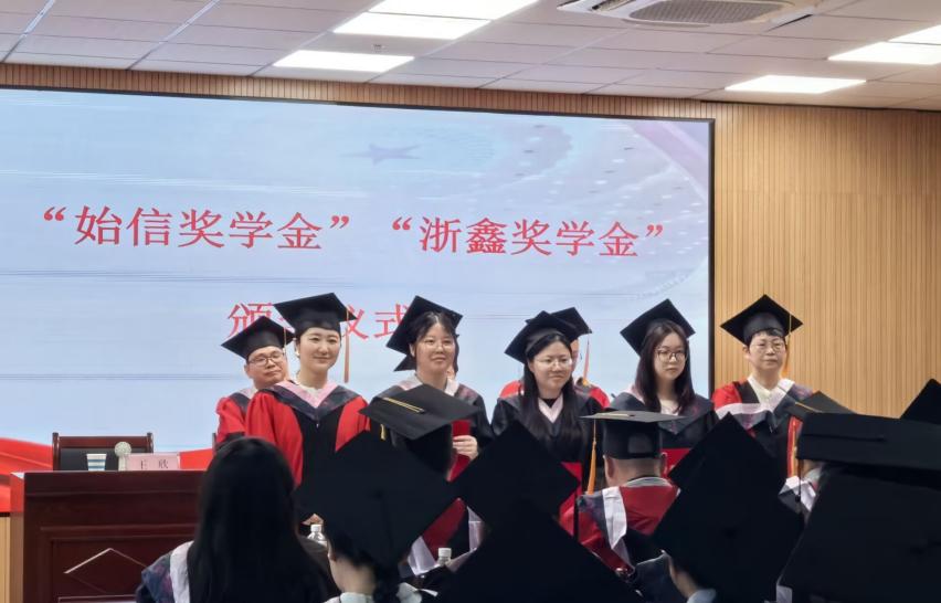 会上,副院长邱少晖宣读始信奖学金和浙鑫奖学金的评选办法和获奖名单,党委委员、学位评定委员会委员聂早早教授、王欣博士分别为获奖学生颁发荣誉证书。