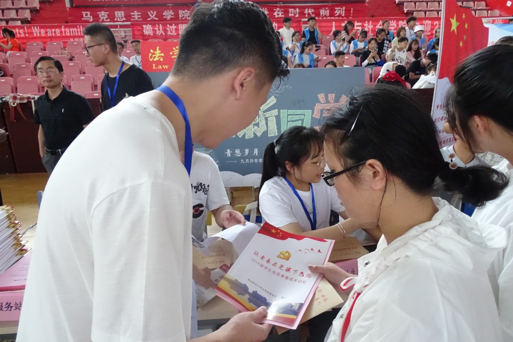 报到当天,现场气氛热烈,虽值天气骄阳似火,但接待热情只增不减。迎新现场,除了设立本科生报到组、研究生报到组接待点外,学院还专门设立了由学生党员志愿者组成的党员服务站接待点,为新生发放《让青春在党旗下飞扬——2019届学生党员青春成长记忆》和《红色基因—入党启蒙》等相关汇编材料,通过入党启蒙教育和优秀党员毕业生的成长经验分享,拉近党组织与他们的距离,鼓励他们坚定理想信念,志存高远,脚踏实地,扣好人生的第一粒扣子,以实际行动在实现伟大中国梦中放飞青春梦想。服务站成员还为新生详细介绍了党的相关理论知识、大学生入党条件、流程等相关问题,让新生对入党程序、入党条件以及学院基层党组织设置有了初步了解。