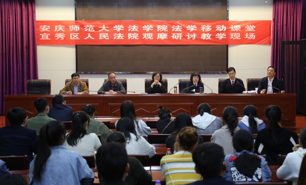 在移动中,有序开展。上午9时30分,法庭庭审在宜秀区人民法院大法庭正式开始,整个庭审活动持续四个半小时。在观摩庭审环节,参加移动课堂的全体同学严格遵守法庭审判纪律,仔细聆听,细心领会。观摩中,对庭审活动涉及的案件性质和事实认定进行学习、鉴别与研判,对法律职业人在庭审中所运用的思维方法、适用法律的技能、诉讼技巧、展现的法律人综合素质等进行观察、思考和学习。在审判结束后,下午15时20分,互动研讨教学在宜秀区人民法院三楼会议室开始,历时一个半小时。宜秀区人民法院刑事审判庭何燕庭长、李恒圆法官、宜秀区人民检察院公诉科鲍卫萍科长和安徽益上律师事务所黄益主任担任法律实务教师,bevitor伟德国际1946部分教师和全体学生参加互动研讨教学。互动研讨主要从三个方面依次进行。首先,法律实务教师分别从审判、控诉和辩护等不同角度对案件进行分析,激发同学们对案件的多维度思考。其次,同学们提出观摩后发现的问题,由各相关法律实务教师进行一一解答。最后,bevitor伟德国际1946朱留虎副院长对互动研讨教学进行归纳总结,并对同学们的表现进行了肯定评价。