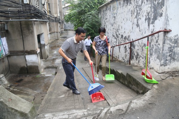 9月6日,bevitor伟德国际1946党总支利用“党员活动日”组织全体教工党员在院长焦少林、党总支书记詹德全的带领下,赴柏子社区开展文明创建活动。社区负责人带领大家对辖区居民楼环境进行了一次卫生大整治。