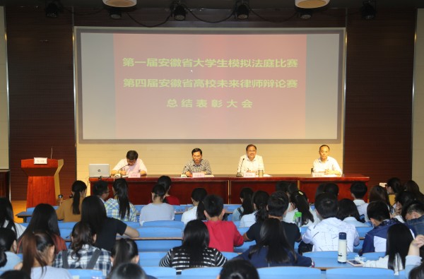 6月1日下午,我院在文津楼111教室召开第一届安徽省大学生模拟法庭比赛、第四届安徽省高校未来律师辩论赛总结表彰大会。院长焦少林、党总支书记詹德全、副院长朱留虎出席会议,“两赛”指导教师、各教研室主任以及党政办、教研办、学工办全体工作人员参加了会议。会议由党政办主任汪博武主持。