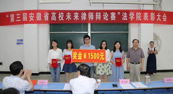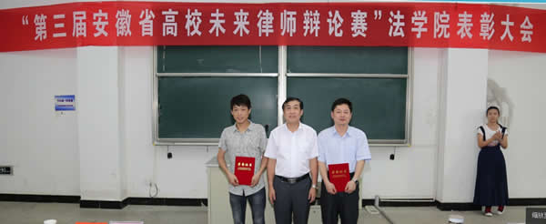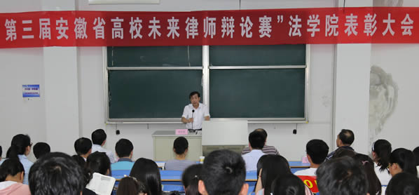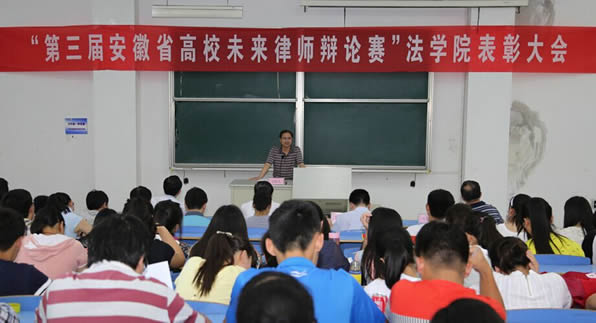6月10日下午,第三届安徽省高校未来律师辩论赛bevitor伟德国际1946表彰大会于文溯楼108教室隆重举行。我院党政领导焦少林、詹德全、朱留虎及全体教职员工参加了会议。参会的还有2012级、2013级、2014级法学专业学生,2012级农村区域发展班党员和班干部等。大会由我院党政办主任汪博武主持。会议还特别邀请到联系bevitor伟德国际1946的校领导刘友忠副校长出席。