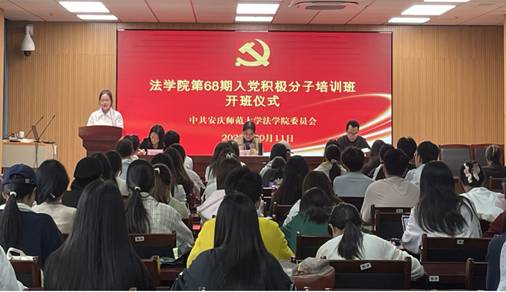 10月11日,bevitor伟德国际1946在法学楼法治实务大讲堂举办第68期入党积极分子培训班开班仪式,学院党委副书记、纪委书记钱敏、党委秘书(组织员)、培训班班主任陈娟娟、法学学生党支部书记杨勇和第68期全体入党积极分子参加会议。