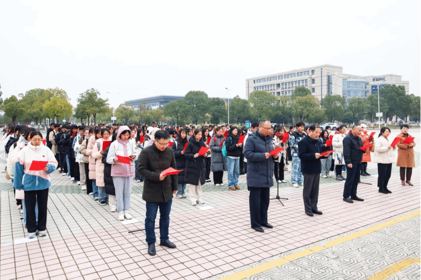 “我宣誓:忠于中华人民共和国宪法,维护宪法权威,履行法定职责,忠于祖国、忠于人民,恪尽职守、廉洁奉公,接受人民监督,为建设富强民主文明和谐美丽的社会主义现代化强国努力奋斗!”现场全体师生右手举拳郑重宣誓。