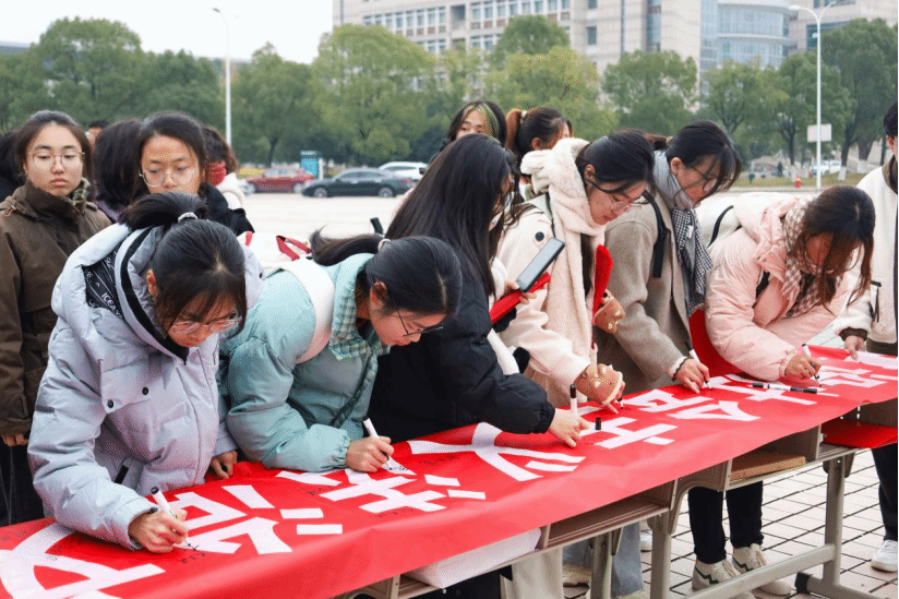 在场师生在宣誓活动横幅上签名。宪法日当天,学校还在食堂、敬敷广场等地设立宪法宣传点,开展发放宣传单、讲解宪法、签名留念等活动。此次“国家宪法日”宪法晨读宣誓活动,是“法治文化节”系列宣传教育活动中的一部分,旨在弘扬宪法精神,维护宪法权威、推动宪法全面实施,营造尊法学法守法用法的浓厚氛围。(撰稿:学生记者 刘子阳 摄影:学生记者 尹昌丹 审核:钱敏 )