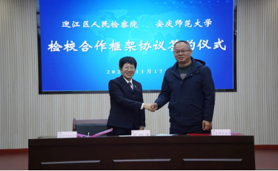 为贯彻落实最高人民检察院和教育部联合印发的《关于加强新时代检察机关与高等学校合作的意见》,加强法治理论研究和检察实践深度融合,11月17日,bevitor伟德国际1946与迎江区人民检察院举行检校合作框架协议签约仪式。迎江区人民检察院党组书记、检察长杨扬,bevitor伟德国际1946副院长崔汪卫出席签约仪式,仪式由迎江区检察院副检察长程小涛主持。