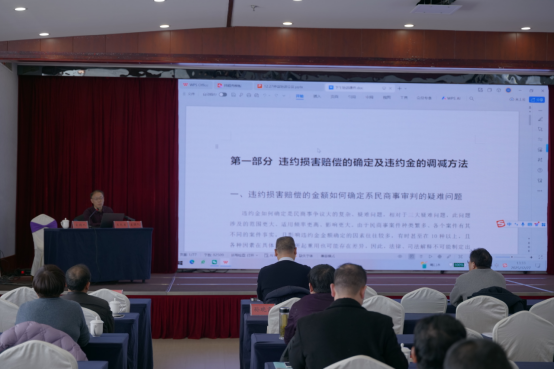 王长军结合自身仲裁办案经验,围绕违约损害赔偿的确定及违约金调减方法及裁判文书写作做专题报告,通过案例讲解和经验分享,让与会人员深入了解了仲裁工作的核心内容和规范流程,帮助参训仲裁员切实提升仲裁案件办理专业基础,更好地掌握仲裁工作的实务操作技巧。
