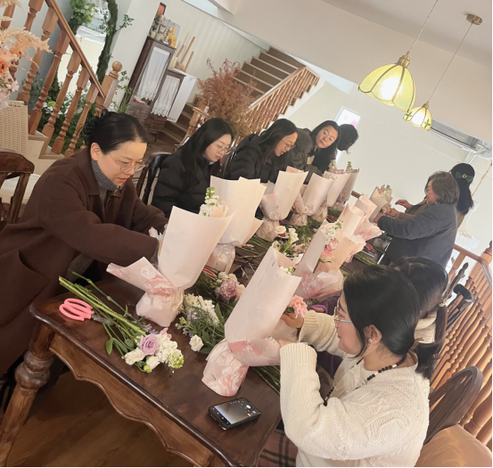 平日里专注教学科研与管理工作的女教职工们,化身“花艺师”与“甜点师”,专注创作、相互切磋。指尖翻飞间,一束束错落有致的花艺作品、一个个精致诱人的法式蛋糕相继完成。大家手持作品合影留念,成就感与幸福感溢于言表,现场欢声笑语不断。