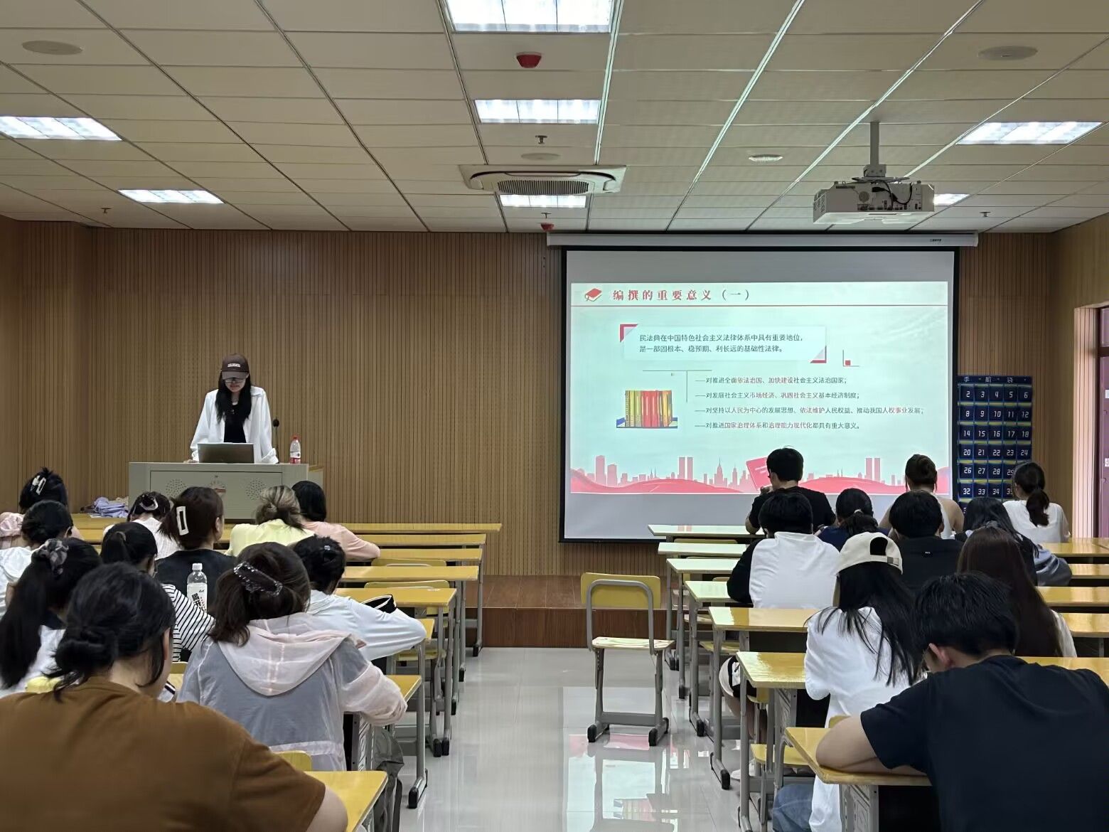“对于大学生来说,学习民法典有助于锻炼法治思维,学会用法律更好地维护自身合法权益”,法学类专业2023(2)班的姜芷菡认为,本次团课活动进一步增强了同学们的法治理念和法律意识,鼓舞着广大青年自觉成为民法典的践行者和宣传者,严格遵守校规校纪,努力做一个遵纪守法的好公民。