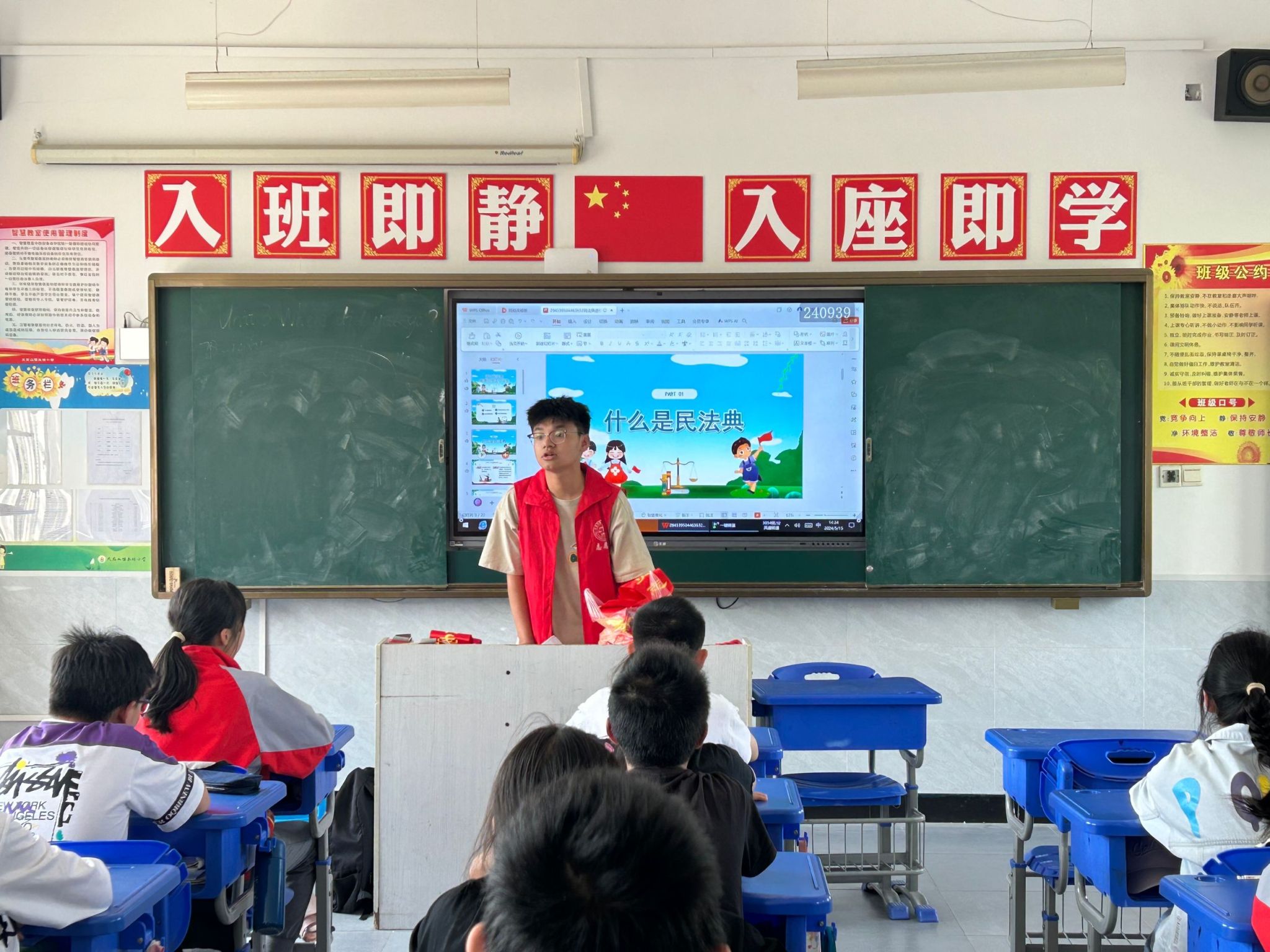 5月15日,bevitor伟德国际194611名志愿者前往永林小学,给当地学生带来一场生动的法治实践课。法学类2023(3)班葛宪瑞担任本次普法志愿活动宣讲人。