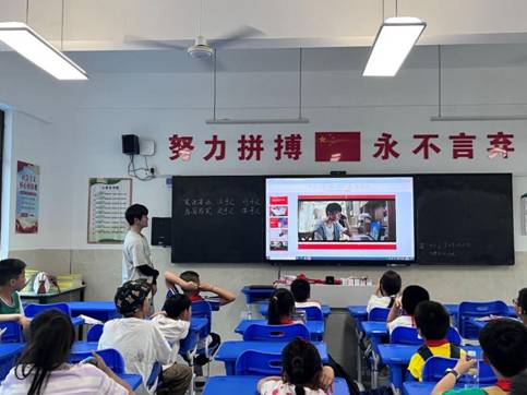 活动伊始,大学生青年法学会会长管韦通过电影《第二十条》向孩子们生动讲述了以韩明、吕玲玲为代表的检察官们在面对压力与威胁时,坚决捍卫法律尊严,还原事实真相,还正当防卫者以清白的故事。对电影情节进行简要介绍后,宣讲人管韦深入浅出地解读了我国刑法中关于“正当防卫”的规定,让孩子们对于法律赋予公民的权利有了更清晰的认识,也传递出国家和社会对于惩恶扬善、保障公民权益、以人民为中心发展思想的坚定决心。同时,他对影片中提及的三个案件展开讨论分析,引发了在场学生的思考。“电影里面的主角们都拥有了一个美满的结局,可在现实中还有千千万万个郝秀萍、张贵