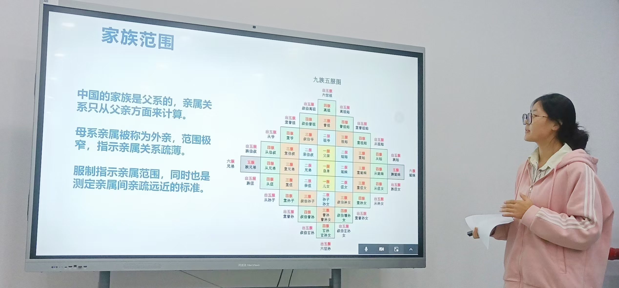 本次读书会的主题围绕经典著作《中国法律与中国社会》展开,该书由历史学家瞿同祖教授所著,通过社会学的研究方法,探讨了中国古代法律的基本精神及其主要特征。本次读书会讨论内容为该书前两章——家族篇与婚姻篇。在展示环节,2023级社会工作班辛敏、2023级法学类3班曹琳分别对家族篇与婚姻篇展开生动论述。辛敏从五服九族的家族伦理关系说起,对“父权”和“复仇”两个概念进行深入阐述,援引现实案例引发了大家对于法律与社会问题的讨论。曹琳结合《昏义》中“婚姻者合二姓之好,上以事宗庙,下以继后世”的理念,对传统社会中婚姻的目的和本质进行深入阐释,并针对当下女性在婚姻中的地位提出了自己的独到见解。在点评及答疑环节。各位老师对汇报成果给予充分肯定,并针对大家在阅读中产生的疑问做出详细解答,引发了在座学生的深入思考。