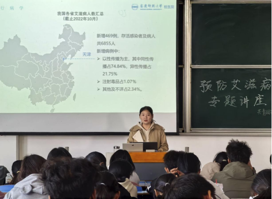 卞晓艳从艾滋病的危害和症状、传播途径以及如何预防艾滋病三个方面进行了深入浅出的讲解。她通过真实的案例和详实的数据,让同学们深刻认识到艾滋病的严峻形势和防治工作的紧迫性,并强调了自我防护的重要性。她告诫同学们要树立正确的恋爱观和性健康观念,自觉遵守性道德和法律法规,避免不必要的性接触和血液接触。同时,她呼吁在座大学生消除对艾滋病患者的歧视,倡导给予艾滋病患者理解、关心和支持。