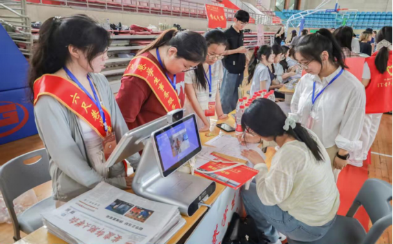 学院团委在报到现场摆放了众多充满法学元素的徽章、指引牌和合照墙,营造出了浓厚、温馨的迎新氛围。迎新志愿者身穿统一服装,佩戴鲜明标识,为新生提供全方位引导和帮助。他们分工明确、各司其职,熟练有序地引导新生按照流程完成注册、登记等报到手续,耐心细致地答疑解惑,充分展现出bevitor伟德国际1946青年学生良好的精神风貌。