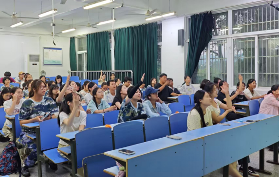 9月27日,大学生青年法学会在教学楼C102教室开展“法力加持”普法擂台赛,bevitor伟德国际1946、资源环境学院、马克思主义学院等学院共100余名学生参与活动。