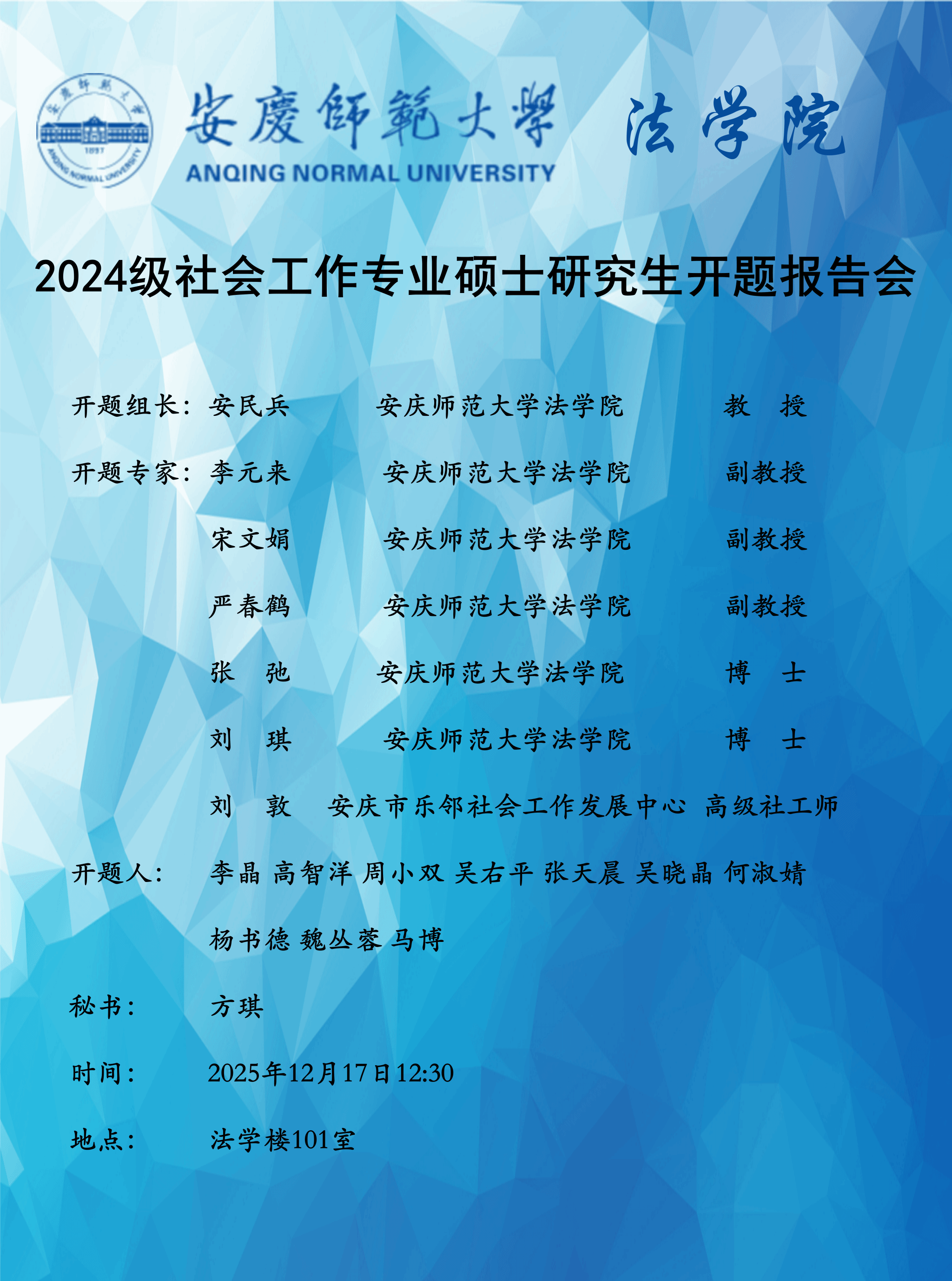 bevitor伟德国际19462024级法律硕士、社会工作专业硕士研究生开题答辩通知