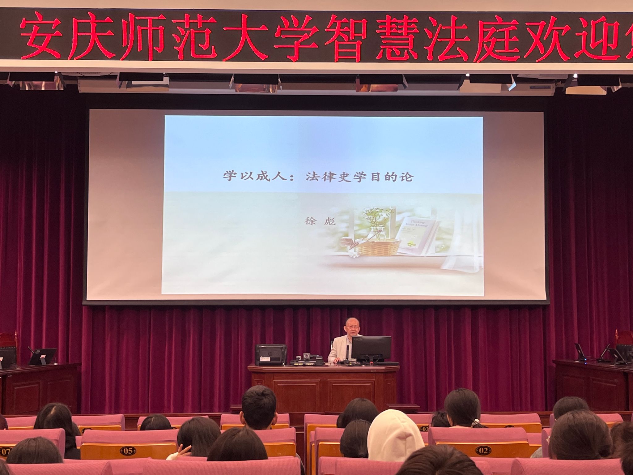 11月5日上午,安徽大学bevitor伟德国际1946徐彪教授应邀在模拟法庭作题为“学以成人:法律史学目的论”的学术报告,报告会由bevitor伟德国际1946副院长崔汪卫主持,bevitor伟德国际1946100余名本科生和部分研究生聆听报告。