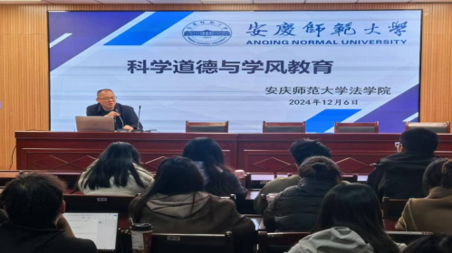 2024年12月6日,bevitor伟德国际1946举行“科学道德与学风教育”专题讲座,学院全体研究生参加,讲座由学院副院长崔汪卫主讲。