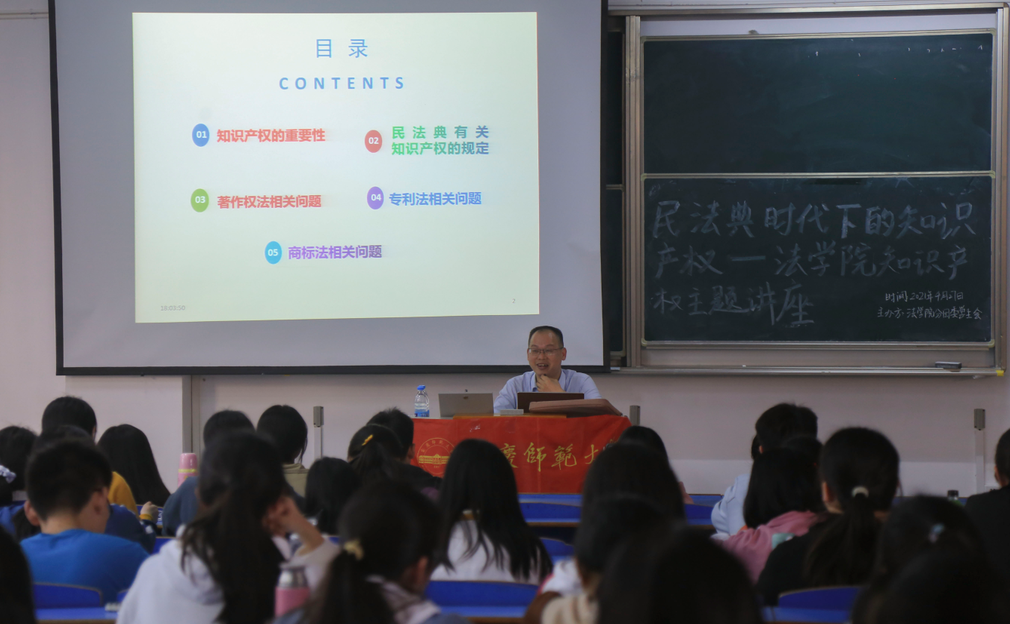 法学专业2020(4)班的江熹汀因为对法律知识的热爱选择了法学类专业,她表示,崔老师的演讲准备充分,条理清晰,让她对知识产权相关法律有了较深刻的了解。“目前,我国正在逐步完善知识产权制度体系,作为法学专业的学生,我要努力为其贡献力量。”