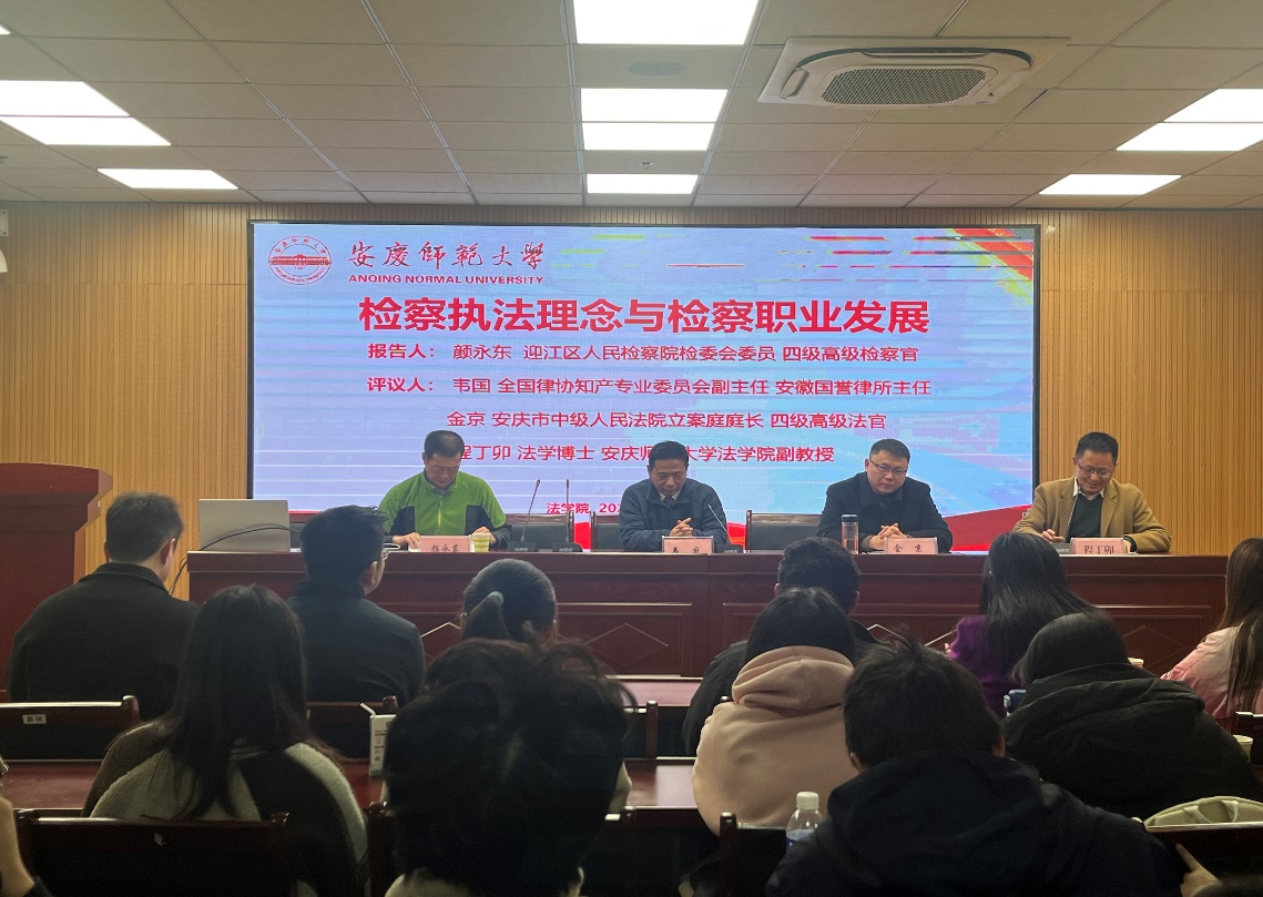 2024年12月20日下午,安庆市迎江区人民检察院检委会委员、四级高级检察官颜永东莅临bevitor伟德国际1946法治实务大讲堂作题为“检察执法理念与职业发展”的报告。安庆市中级人民法院立案庭庭长金京、安徽国誉律师事务所主任韦国担任评议人,报告会由bevitor伟德国际1946副院长崔汪卫主持,学院师生、律师、法官、检察官等100余人聆听报告。