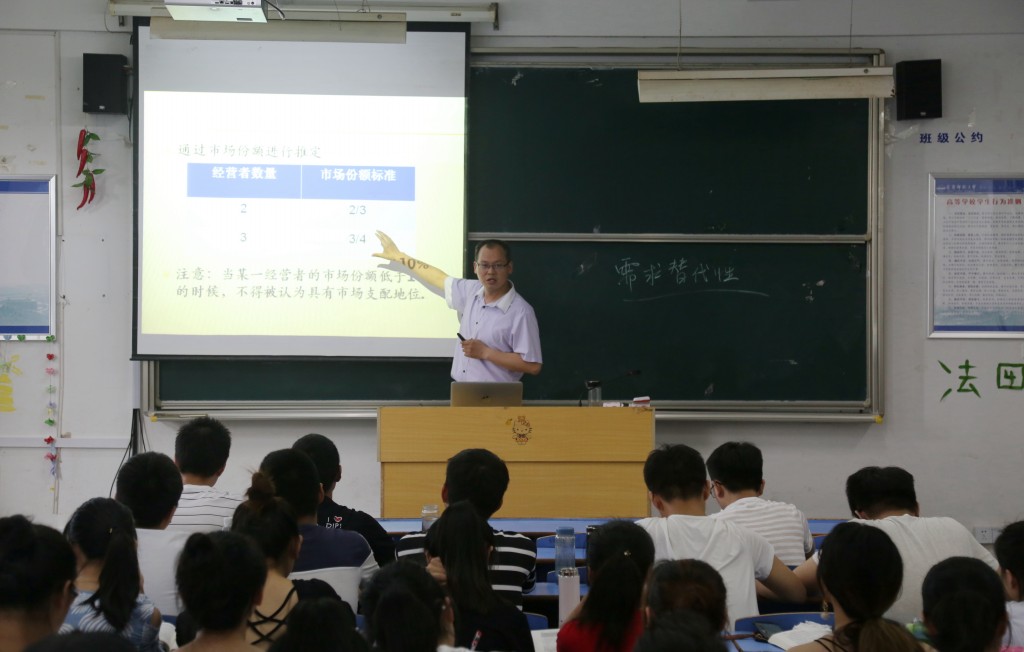 为扎实推进教学审核评估工作,强化质量保障体系建设,丰富期中教学检查内涵,我院于5月16日下午在D406举行了公开课教学,由知识产权教研室主任崔汪卫博士讲授《市场竞争法》,分管教学的朱留虎副院长及全体教师参加了听课。