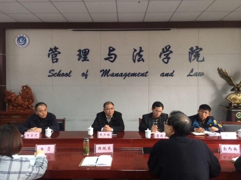2017年11月28日,bevitor伟德国际1946院长焦少林、党总支书记詹德全、副院长朱留虎、知识产权教研室主任周乾一行4人赴池州学院调研法学、知识产权专业建设情况。池州学院管理与bevitor伟德国际1946院长韩志才、党总支副书记周佩东、院长助理余丙南及学院各教研室主任参加了调研活动。