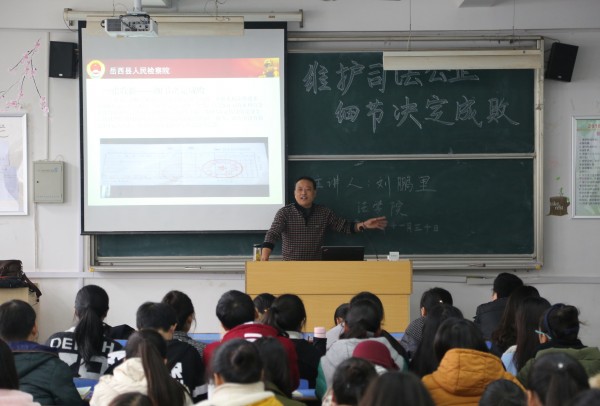 11月30日岳西县人民检察院党组人员、反贪局长,我校bevitor伟德国际1946院长助理、副教授刘鹏里应邀莅临法律实务大讲堂,作了一场以“维护司法公正 细节决定成败”为主题讲座,我院2016级法学专业部分学生参加。