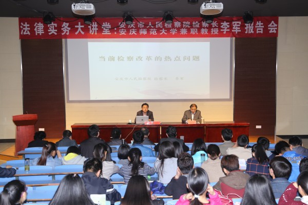 4月27日,安庆市人民检察院检察长、我校兼职教授李军应邀来我校法律实务大讲堂做了题为“当前检察改革的热点问题”的报告,该报告也是伟德国际1946bv发展战略研讨会系列报告之一。bevitor伟德国际1946党政领导和法学专业师生200余人参加了报告会,报告会由bevitor伟德国际1946院长焦少林教授主持。会后,校长闵永新教授与李军检察长进行了座谈,闵校长介绍了我校发展情况,对李军检察长和安庆市人民检察院长期以来对我校、特别是我校法学学科专业建设给予的关心和支持,表示感谢。