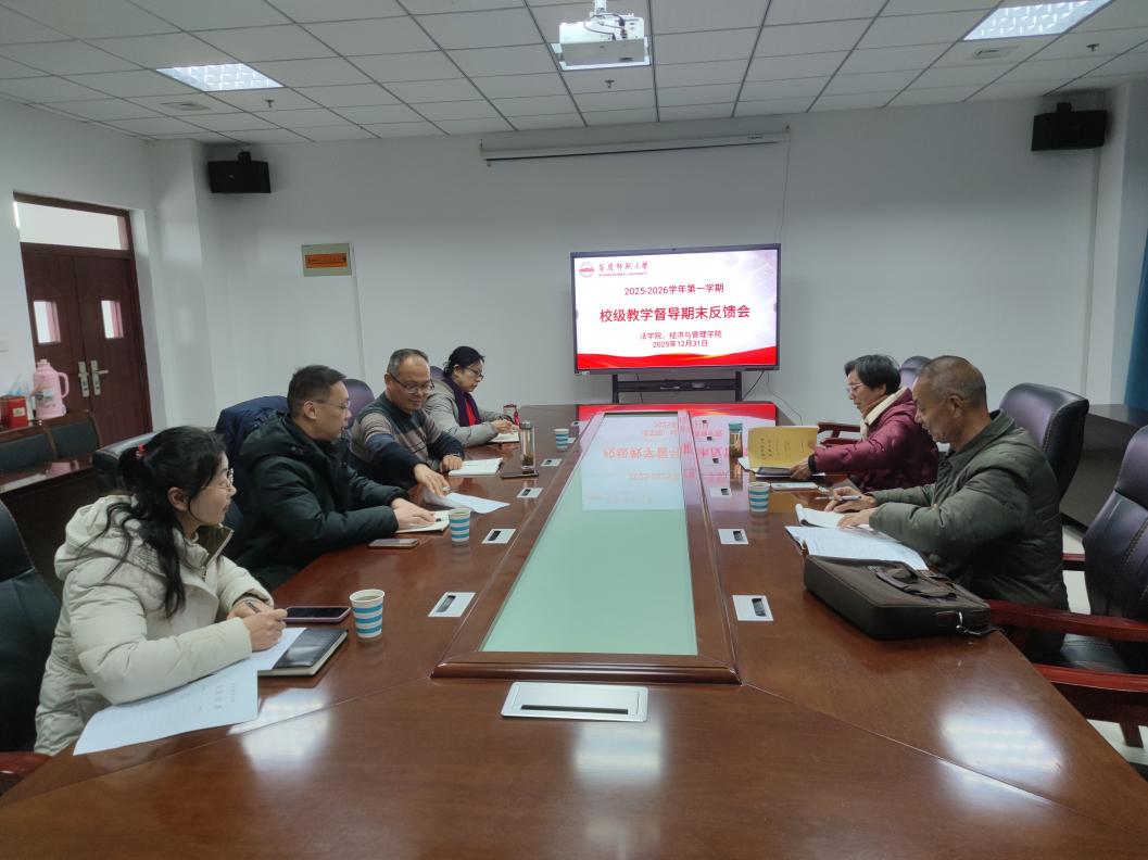 12月31日下午,bevitor伟德国际1946与经管学院联合召开2025-2026学年第一学期校级教学督导反馈会。校教学督导员查名祥、张琴到会反馈督导情况。bevitor伟德国际1946院长崔汪卫、经管学院副院长黄光锋、两院教学秘书参加会议,会议由黄光锋主持。