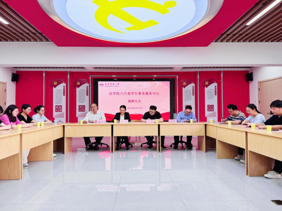 钱敏在讲话中强调,设立六尺巷学生事务服务中心是学院党委深化党建工作、践行服务育人理念的重要创新举措。该中心不仅是解决学生事务、践行服务宗旨的窗口,更是凝聚师生力量,培育学生法治精神、社工精神,弘扬中华优秀传统文化的关键阵地,同时也是推动学院党建与学生工作深度融合的重要平台。她希望服务中心以六尺巷文化为核心,构建“党建引领、法治赋能、温情服务”三位一体的工作模式,充分发挥专业优势,整合各类资源,切实发挥好桥梁纽带作用,成为学院联系、服务、引领学生成长的红色枢纽和优质服务平台。